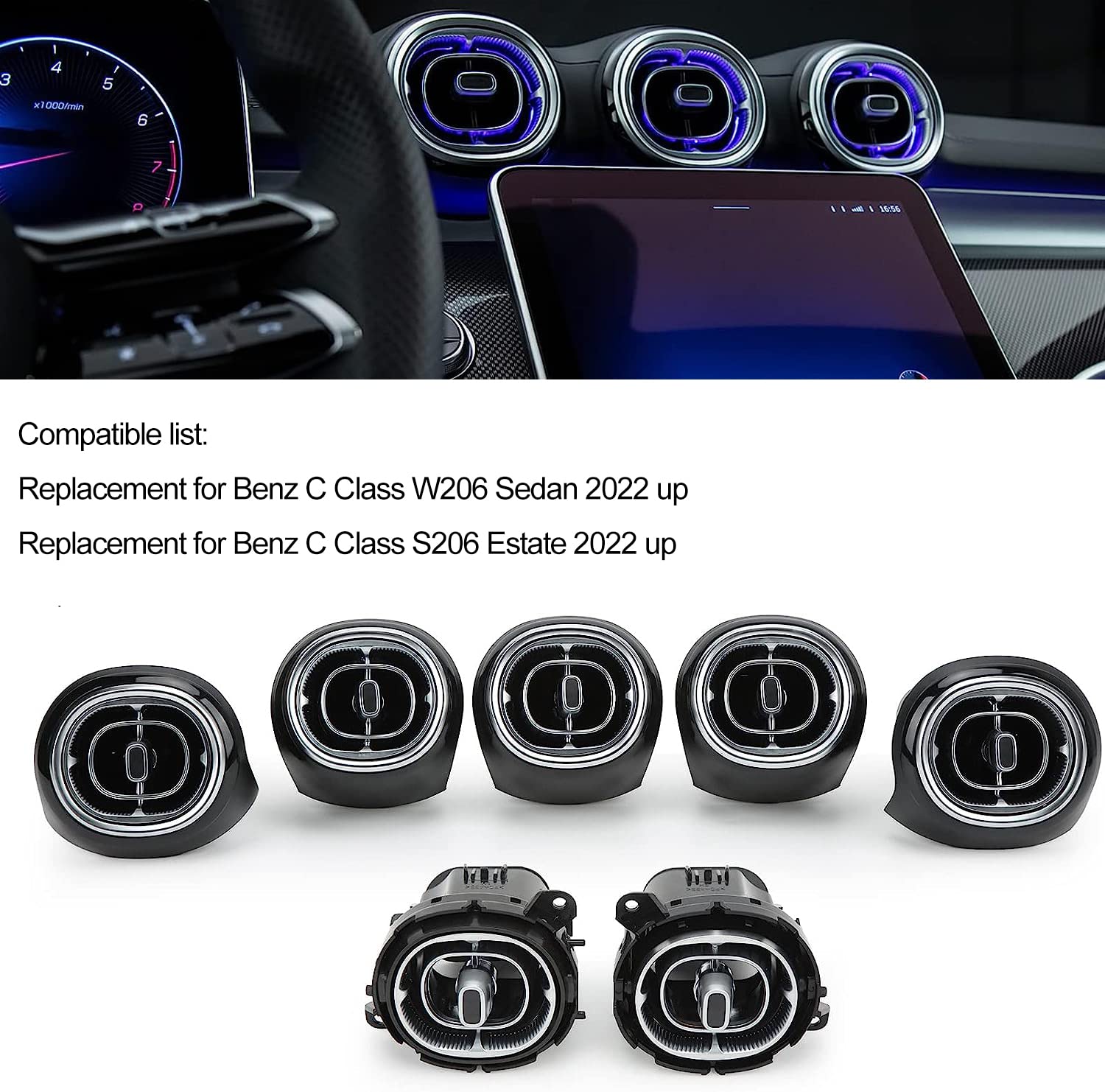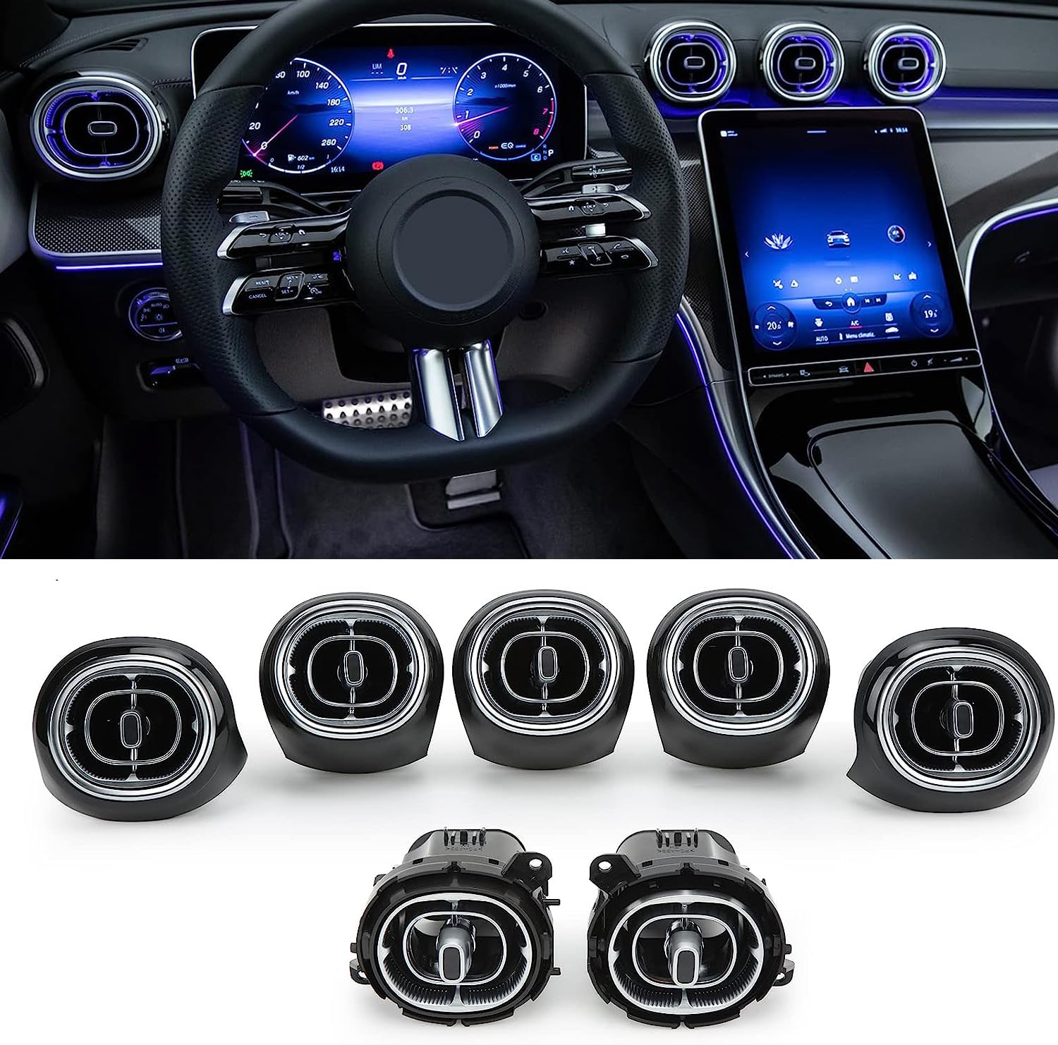 7pcs Turbine Air Vent LED Ambient Light Kit 64 Colors Replacement for Benz GLC Class X254 2023-2024year